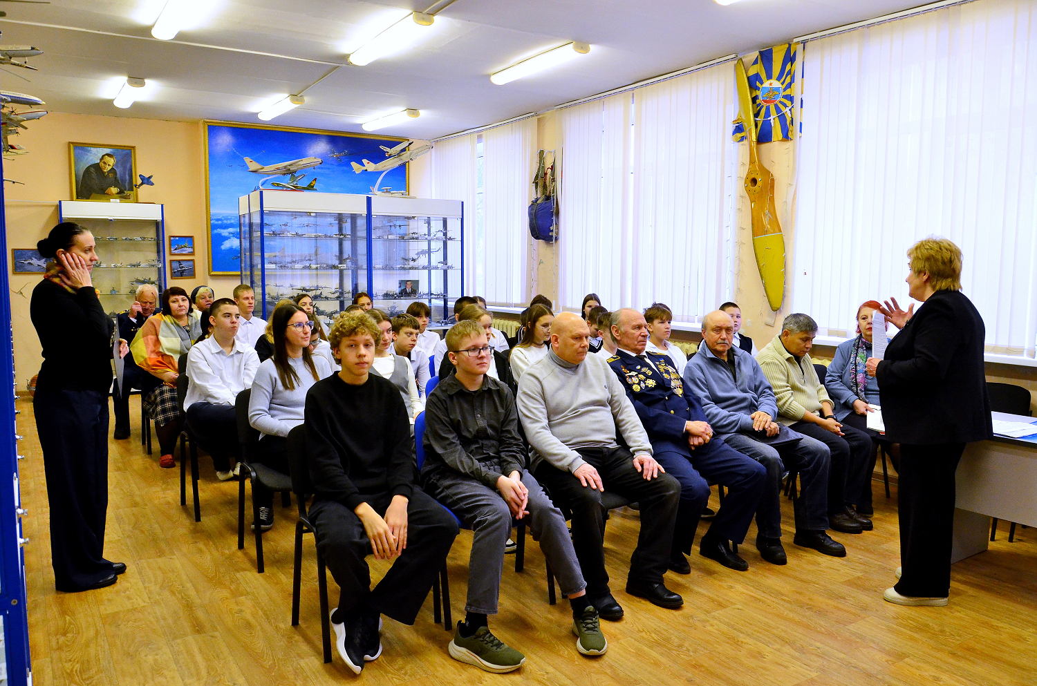 Фотоотчёт по круглому столу тесного партнёрства в патриотической и воспитательной работе, прошедшему на базе «Музея истории и развития мировой авиации» в 11-й брянской школе 16-го декабря 2025 года