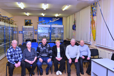 Группа брянских ветеранов авиации, участвовавших в мероприятиях проекта «Юношеству – окрыляющий пример», на итоговом собрании в «Музее истории и развития мировой авиации», 29 декабря 2025 года. Слева-направо: Геннадий Фёдорович Гудков, Ольга Ивановна Гудкова, Владимир Викторович Зимин, Тамара Михайловна Гречишникова, Владимир Михайлович Рябцев и Игорь Анатольевич Мосин